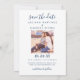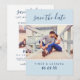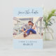 Einfach stilvolle zweiseitige Hochzeitsfeier speichern Sie die Datumskarten mit zwei Verlobungen Fotos und modernem, individuellem Text. Personalisieren Sie die Kartenvorlagenformulierung auf der Vorder- und Rückseite der Karte für Ihren großen Tag. Der hellblaue graue Hintergrund und die marineblau Farbe des Textes können an Ihre Hochzeitsfarbe angepasst werden.
