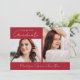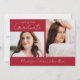 Mit dieser stilvollen, modernen Ankündigung des Foto Abschlusses verkünden Sie die Leistungen und Pläne Ihres Absolventen. Auf der Vorderseite der Ankündigung werden 2 Fotos angezeigt - 1 waagerechtes und 1 vertikales Foto. "Graduate" wird in einem trendigen, handgeschriebenen weißen Skript mit rotem Hintergrund angezeigt. Personalisieren Sie die Ankündigung des roten Abschlusses mit dem Jahr und dem Namen des Absolventen. Die Ankündigung kehrt zurück, um ein zusätzliches Foto mit Ihrem eigenen Text in weißer Schrift anzuzeigen. Diese 3 Foto Abschluss Ankündigung ist ideal für High School oder Uni-Abschlüsse.
