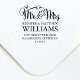 Rustikales, schicke Hochzeitsdesign mit fett und spielerisch handgeschriebenem Mr. and Mrs. Kalligraphie Schrift Typografie und Schriftzeichen-Design Akzente. Personalisieren Sie das elegante, maßgeschneiderte Monogramm mit Ihrem verheirateten Nachnamen und Ihrer Rücksendeadresse für Ihren lässigen Hochzeitstag.
