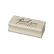Passen Sie die Namen und das Veranstaltungsdatum dieser einfachen und modernen Briefmarke mit einem Handling-Stilskript für die Worte "Danke" an.