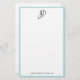 Moderne Handskript-mit Monogramm einfache Schablonen-personalisiertes blaues Grün-weißes Briefpapier-Papier.