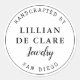 Moderner und stilvoller Etikettenaufkleber für Ihr kleines Unternehmen. Im Text steht oben "handgefertigt von". Geben Sie in der Mitte Ihren Firmennamen ein. Im unteren Teil können Sie Ihren Standort hinzufügen, sodass es den kleinen Unternehmen einen Anblick gibt und die Kunden wissen, dass sie ein lokales Kleinunternehmen unterstützen. Verwenden Sie dies, wenn Sie Ihre Produkte verpacken.