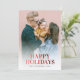 Zeitgenössische Urlaubskarte mit familiärem Foto, den Worten "Feiertage" in einer eleganten roten Farbverlaufsart, Familienname und das Jahr.