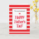 Eine moderne rote Vatertagskarte für den Mann. Es hat einen rot gestreiften Hintergrund auf der Vorderseite und ein kleines rotes Herz. Das Innere dieser modernen Happy Vatertagskarte liest eine Vatertagsbotschaft, die Sie leicht personalisieren können, wenn Sie gewollt haben. Im hinteren Teil befindet sich das gestreifte Design mit dem roten Herzen, wo Sie sich mit dem Jahr ganz persönlich verwöhnen lassen können. Das wäre ein toller Sake für ihn.