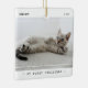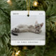 Modernes Haustier 2 (zwei) Foto Weihnachtsschmuck Keramik. Design beinhaltet zwei Fotos von Ihrem Haustier Welpe oder Kätzchen, die Überschrift "Mein erstes Weihnachten", ihren Namen und Jahr. Der gesamte Text lässt sich mit der bereitgestellten Vorlage leicht anpassen.