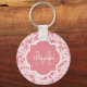 Fügen Sie Ihrem persönlichen Stil eine feminine Touch mit diesem modernen, hellrosa blumengeschmückten Schlüsselanhänger mit einem gürlich gerahmten Monogramm hinzu. Jedes Mädchen würde Liebe haben, ihren Namen und ihre Initialen auf diesem hübschen in rosa Blume Design personalisiert zu haben.