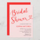 Modernes Herz-Kalligrafie-Brautparty Rosa Rot Einladung