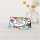 Modernes Hochzeitsbuch mit farbenfrohen typografis Platzkarte
