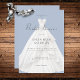 Modernes Hochzeitskleid auf blauem Brautparty Einladung
