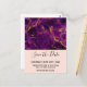 Save the Date Postkarte mit einem abstrakten Muster und Marmordesign. Reiche lila Farbkombinationen, kombiniert mit Imitat-Gold schwirbelnden Farbbändern, die das gesamte Design durchziehen. Eine pfirsichfarbene Schicht unter dem Muster mit einem eleganten Imitat mit goldfarbenem Streifen.