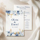 Behalt deinen Gästen, die von diesem modernen blauen und goldenen Hochzeitsprogramm begeistert sind. Dieses elegante Layout wurde mit sanften Aquarellfloralen in staubigen Blau- und Goldtönen gestaltet und bietet Platz für Ihre Zeremonie Details, die Namen von Hochzeitsfeiern und eine herzliche Danksagung. Dieses Programm ist perfekt für Kirchen, Outdoor oder Hochzeiten in Urlaubsort geeignet und passt wunderbar zur Erholung der Hochzeitskollektion "Modern Blue and Gold Floral". Ein stilvoller und praktischer Sake für Ihren besonderen Tag.