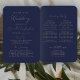 Dieser elegante, moderne Hochzeitsfan besticht durch goldfarbenen Text auf marineblarem Hintergrund. Die Titel und Untertitel erscheinen in einem schönen Schriftsatz, der Rest in serifenem Schriftart.