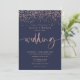 Moderne Rose Goldfolie Konfetti und marineblaue Hochzeitsschrift