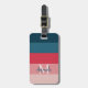 Moderne horizontale Streifen rosa und blau monogramm Gepäckanhänger. Das Design ist blau, navy, rosa und rot Streifen, Monogramm und Kontaktdetails auf der Rückseite.