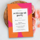 Set den Ton für eine fantastische Pensionssommer mit diesem lebendigen, trendigen Farbschema aus heiß rosa und orange. Diese farbenfrohe Einladung hat einen Designerlook mit hellorangefarbenen abgerundeten Formen auf einem heißen rosa Hintergrund. Die Textvorlage in zeitgenössischer, knackiger Schrift führt das Thema wunderschön aus und kann mit Ihren speziellen Eventdetails bearbeitet werden.