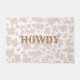 Moderne Cowgirl oder Cowboy-Türe für Student, Schlafzimmer, mit beige und weiß Kuh-Spots und howdy Begrüßung. Kuhtierdruck in modernen Farben