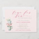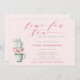 Eine hübsche und moderne Baby-Dusche Tee-Party Einladung mit einer Aquarell-Illustration von gestapelten Teetassen und der Überschrift "Zeit für Tee" in Beerenrosa modernen kalligraphischen Schriftart.