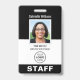Mit diesem personalisierten Abzeichen zur Mitarbeiteridentifizierung erstellen Sie ein berufliches Erscheinungsbild. Eine einfache und stilvolle Vorlage mit Logo, ID-Foto, Name, Jobtitel und Mitarbeiternummer. Der gesamte Text kann angepasst werden, sodass Sie die gewollt Informationen einschließen können. Kontaktinformationen liegen auf der Rückseite, sowie weitere Informationen und ein QR-Code. Farben: schwarz, grau und weiß. Vertikales Format