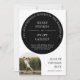 Moderne Foto Hochzeitseinladung mit einem Ihrer Fotos in Bogenform und Ihre Hochzeitseinladung Formulierung in einem modernen typografischen Design in einem Kreis in Schwarz-Weiß, aber die Fotos in Farbe gedruckt. Einzigartige Hochzeitseinladung mit informellem Typografie-Design. Moderne Hochzeitseinladung personalisiert mit zwei Fotos, eines auf der Rückseite.