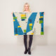 Mitte des Jahrhunderts Modernes Inspiriertes Fleece Blanket, entworfen nach der Mitte des Jahrhunderts und der Atomzeit in den Farben Blau, Gelb, Schwarz und Kalkgrün.