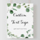 Dieses moderne Kalligrafie-Sondertext Eukalyptus-Zeichen ist ideal für eine einfache Hochzeit oder ein einfaches Brautparty. Das Design bietet Aquarellfarben handgezeichnet elegante botanische Eukalyptuszweige und Blätter.