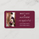 Moderne trendige Kalligrafie Script Wedding Registry Insert Card. Foto an der Vorderseite. Burgunderrot