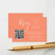 Moderne Kalligraphie Herzschrift Minimalistisch Einfache Hochzeitskarte mit QR Code. Korallenuntergrund.