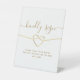 Elegantes, schlicht weißes Kinderzeichen Hochzeitstabletop-Schild mit Imitaten goldenem Seil Herz und modernem Kalligrafiebeschreiben.
