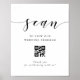 Maßgeschneidertes Hochzeitsprogramm QR-Code-Tafelschild mit modernem minimalistischem Schwarz-Weiß-Design.