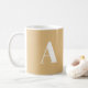 Minimalistischer moderner Kamelbeige kundenspezifische Monogramm Anfangsbuchstabe Kaffee Tasse. Maßgeschneiderter weißer Text auf Kamelbeige mit festem Hintergrund.