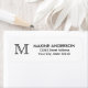 Das Design zeichnet sich durch ein personalisiertes Monogramm Initial-, Name- und Adressdetails in einem einfachen und modernen typografischen Schriftart aus.