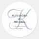 Diese eleganten Hochzeitsaufkleber haben ein stylisch dustisches blaues Monogramm und einen weißen Hintergrund.