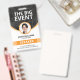 Ein modernes Abzeichen für Tagungs- und Veranstaltungsgäste, Vip's, Lautsprecher oder Mitarbeiter. Das Design zeigt die Personen Foto, sowie den Namen und Beruf der Personen. Die Personenbezeichnung wird in weißen Buchstaben auf farbigem Hintergrund dargestellt. Das moderne Konferenz ID-Abzeichen kann auf Wunsch ein personalisiert geeignetes Foto hinter dem Veranstaltungstitel sein. Die Rückseite dieses ID-Abzeichens ist leer und für Sie geöffnet, um weitere Informationen, wie z.B. einen Bar-Code oder Details von Event-Sponsoren, hinzuzufügen. Die Farben können personalisiert sein, um dem Farbschema Ihres Unternehmens zu entsprechen. Grüne Fassung.