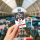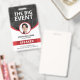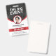 Ein modernes Abzeichen für Tagungs- und Veranstaltungsgäste, Vip's, Lautsprecher oder Mitarbeiter. Das Design zeigt die Personen Foto, sowie den Namen und Beruf der Personen. Die Personenbezeichnung wird in weißen Buchstaben auf farbigem Hintergrund dargestellt. Das moderne Konferenz ID-Abzeichen kann auf Wunsch ein personalisiert geeignetes Foto hinter dem Veranstaltungstitel sein. Die Rückseite dieses ID-Abzeichens ist leer und für Sie geöffnet, um weitere Informationen, wie z.B. einen Bar-Code oder Details von Event-Sponsoren, hinzuzufügen. Die Farben können personalisiert sein, um dem Farbschema Ihres Unternehmens zu entsprechen. Rote Version