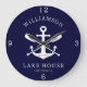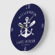 Moderne Lake House Familie Name Nauavy Blue Large Clock