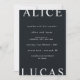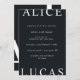 Unsere Kollektion "Ultra Modern Wedding" beinhaltet überdimensionierte Monogramme in einem Serif-Schriftart, die oben und unten überlaufen und mit einem modernen Script für alle weiteren Informationen gepaart sind. Sie können zwischen verschiedenen Hintergrund- und Schriftart-Farben wählen und die Produkte einfach anpassen. Karo in unserem Shop für weitere Artikel aus dieser Kollektion.