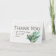 Brautparty Dankeschön Karte mit einem modernen Bouquet von grünen und goldenen Blätter.