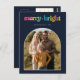 Diese "Modern Vibrant Merry + Bright Arch Foto Christmas Postcard" verbindet elegantes Tiefenblau mit spielerischem, farbenfrohen "fröhlich + hell" Buchstaben und schafft so einen fröhlichen Urlaubssgruss. Mit einem familiären Foto in einem Bogen-Rahmen ist es eine gelungene Mischung aus lässigem Charme und modernem Stil, was Ihre festliche Botschaft wirklich hervorhebt.