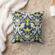 Modernes lederfarbenes gelbes blaues ikat Stammes- Kissen