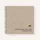 Minimal moderne, luxuriöse Gold gebürstete Metal Monogram erste Emblem Name Custom Text Beige Linen Texture Background Graph Paper Notebook. Stilvolles klassisches Design, das Sie mit Ihrem Monogramm, Namen und Titel oder Text Ihrer Wahl in klassischer Typografie-Schrift personalisieren können.