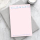 Klebende Notizen mit Ihrem Namen in einem fett-weißen Schriftart mit einem hellblauen Schatten auf einem blassrosa Hintergrund.