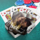 Modernes, trendy Liebe Foto spielen Karten. Design bietet Single Foto von Ihnen und Ihrem Partner und Kalligraphie Skript-Liebe. Personalisieren Sie den Text mit einem Familiennamen oder entfernen Sie ihn.
