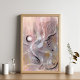 Dieses moderne abstrakte Kunstwerk mit lila Farbtönen, Weiß-, Schwarz- und Orangendetails wurde mit gemischten Medien geschaffen und repräsentiert eine künstlerische Fantasie der Tiefe in einem modernen Schlüssel, der durch dieses Poster ein Gefühl der Gelassenheit in Ihrer Umgebung bringen kann.