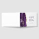 Dieses elegante Gästebuch besticht durch ein lila Aquarelldesign mit vergoldetem Imitat-Glitzer. Einfache Anpassung des kohlegrauen Textes auf weißem Hintergrund, mit den Namen der Braut und des Bräutigams in skurriler Handschrift Kalligraphie über einen großen, blassfarbenen lila Ampersand. Fügen Sie dem Vorder- und Rückgrat einen zusätzlichen Text Ihrer Wahl hinzu.