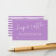 Baby Shower Diaper Raffle Ticket Card mit einem handgeschriebenen, kalligraphischen Skript-Schriftart-Set auf lila Hintergrund und koordinierendem Streifen zurück für eine besondere Touch.