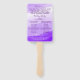 Moderner Boho lila-weiß Watercolor Ombre Foto Hochzeitsfeier Handfan mit einem einfachen Design mit Ihren Namen in einem eleganten handgeschriebenen Drehbuch am oberen links und Ihre Hochzeitsdetails in der rechten Ausrichtung unten rechts, über Ihrem Lieblings-Foto. Die Rückseite hat Ihre Reihenfolge der Zeremonie, Hochzeitsfeier und danke Ihnen Nachricht in magenta über einen magentafarbenen Hintergrund. Die schicke Handschrift fügt diesem minimalistischen Design eine romantische Touch hinzu.
