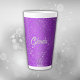 Genießen Sie Ihre Lieblingsgetränke stilvoll mit dieser großen Latte-Tasse. Freuen Sie sich auf ein modernes lila gebürstetes Metalldesign und ein elegantes silbernes Monogramm. Das lebendige, lila Muster verleiht dem Ganzen eine zeitgenössische Touch, während die großzügige Größe perfekt für Latten, Tees oder heiße Pralinen geeignet ist. Diese Tasse, die für Eleganz und Langlebigkeit konzipiert wurde, verbindet eine schicke Ästhetik mit praktischer Funktionalität und macht jeden Drink zu einem anspruchsvollen Erlebnis.