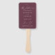 Eleganter Hochzeitsprogramm Handfan mit einem modernen weißen Kalligraphieskript mit lila Hintergrund, um ein Design zu schaffen, das perfekt für Hochzeiten aller Stile und Jahreszeiten geeignet ist. Personalisieren Sie die Front des modernen Hochzeitsprogramms mit Ihren Namen, Hochzeitstag und Ort, und individuelle Danksagung Nachricht. Der Fan des Hochzeitsprogramms kehrt zurück, um die Reihenfolge des Dienstes und eine Liste Ihrer Hochzeitsfeier anzuzeigen. Der lila Hochzeitshandfan wurde geschaffen, um sich mit unserer Hochzeitskollektion "Moderne Elegance" abzustimmen.