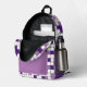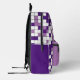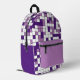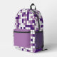 Dieser Rucksack ist mit einem geometrischen Gitterdesign in Lavendel, Schwarz und Weiß ausgestattet. Die Quadrate sind in einem zufälligen Muster gefärbt und Sie können die Farben im Design-Tool bearbeiten. Ideal für Schule, Gymnastik oder Reisen.