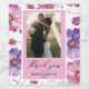 Das moderne Lila Rosa Blossom Script Foto Wedding Dankeschön Weinetikett ist ein herzlicher Weg, um Dankbarkeit an Ihre Lieben zum Ausdruck zu bringen. Dieses Label, das Ihr Lieblingsheirat als Herzstück bietet, ist ein personalisierter Sake, den Freunde und Familie schätzen werden. Das Design ist elegant und zeitlos, mit Raum für eine individuelle Botschaft der Wertschätzung, um Ihnen herzlichen Dank zu zeigen. Dieses Label ist perfekt für Paare, die eine persönliche und sinnvolle Touch zu ihren Vorzügen hinzufügen möchten. Dieses Label erfasst die Freude und Schönheit Ihres besonderen Tages und macht Ihre Dankbarkeit unvergesslich.
